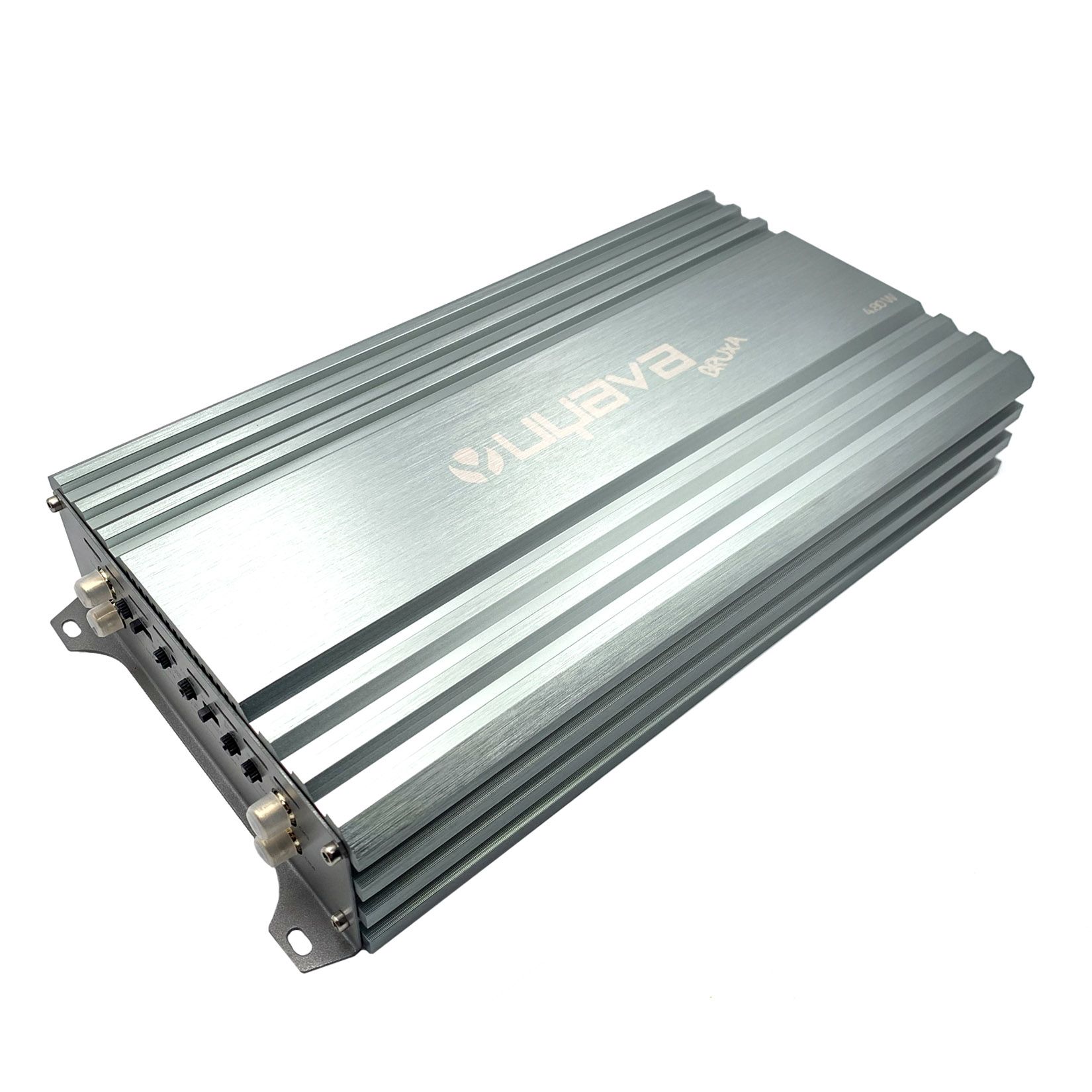 Uyava BRUXA 4.80 - 4х канальний підсилювач. Номінальна потужність: 4 x 80 Вт - 4 Ом, 4 x 130 Вт - 2 Ом, мостовий режим 2 x 260 Вт - 4 Ом. Підсилювач має клас AB. НЧ, ВЧ фільтри, басбуст. Якісний важкий металевий корпус, позолочені контакти, масивний корпус і стильний дизайн, ось що вирізняє підсилювач з-поміж конкурентів. Серія Брукса підійде більш вимогливим до якості звучання слухачам, підсилювач зібрано на якісних компонентах з розвиненою системою охолодження.
