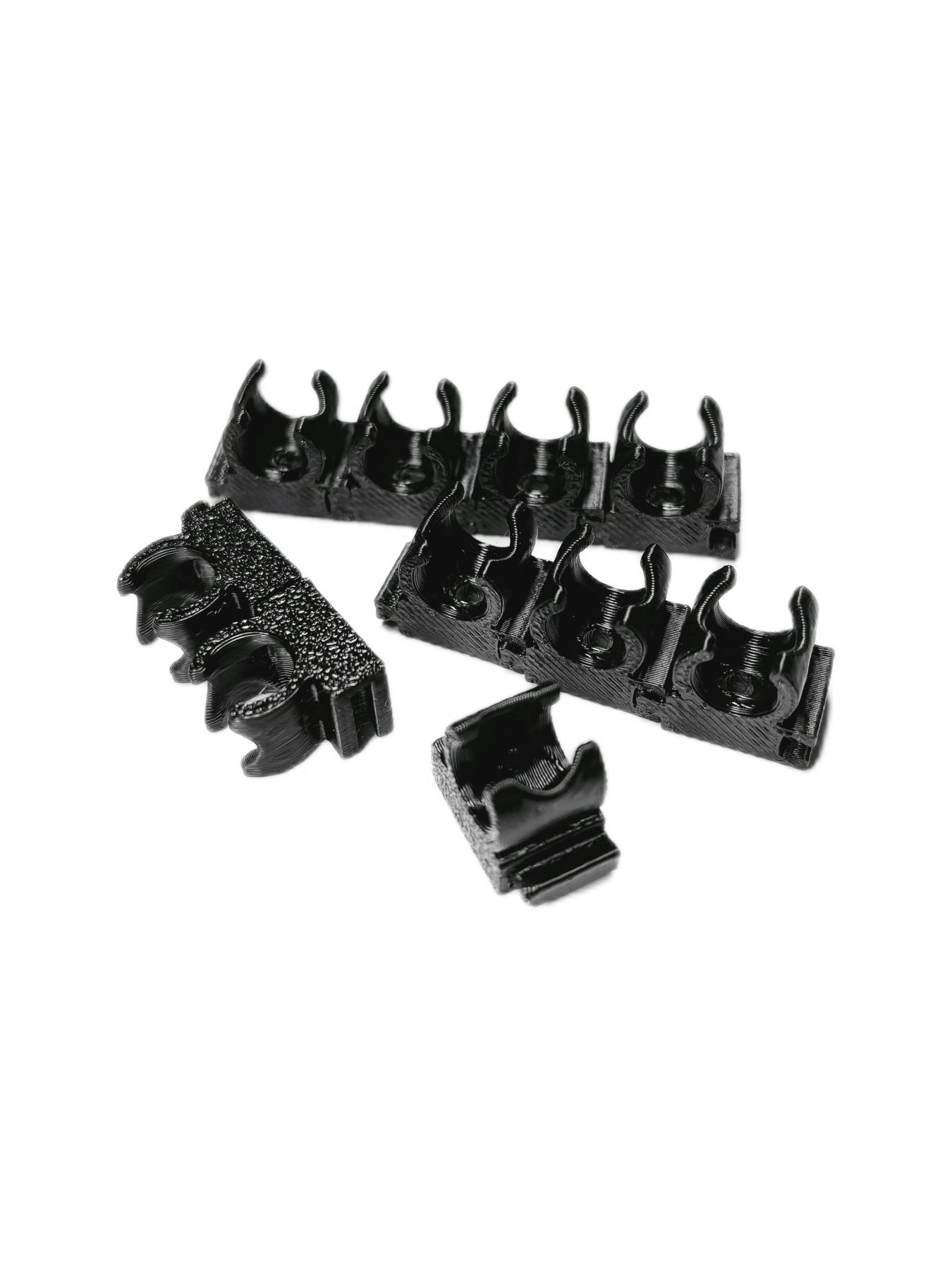 Uyava Candy Clip - кріплення для міжблочних кабелів. З'єднуються між собою в шини, та мають потайні отвори для прикручення саморізом. Дають змогу організувати максимально естетичний монтаж кабелів. В упаковці 10шт.