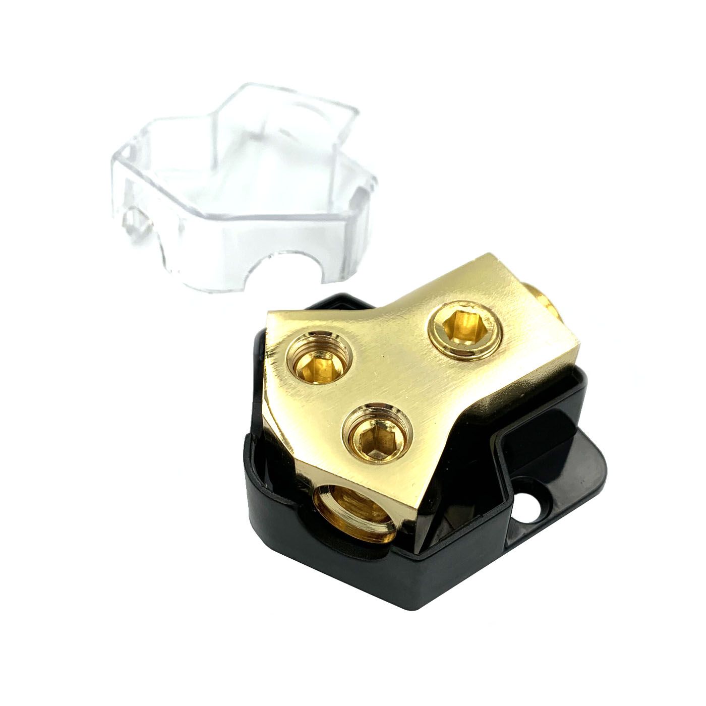 Uyava Ground2 – автомобільний мінусовий дистриб'ютор живлення. 1x2GA(35кв.мм) - вхід та 2x4GA(21кв.мм) - вихід. Тримач немає запобіжників і призначається для комутації "землі". Контакти мають позолоту для кращої провідності.