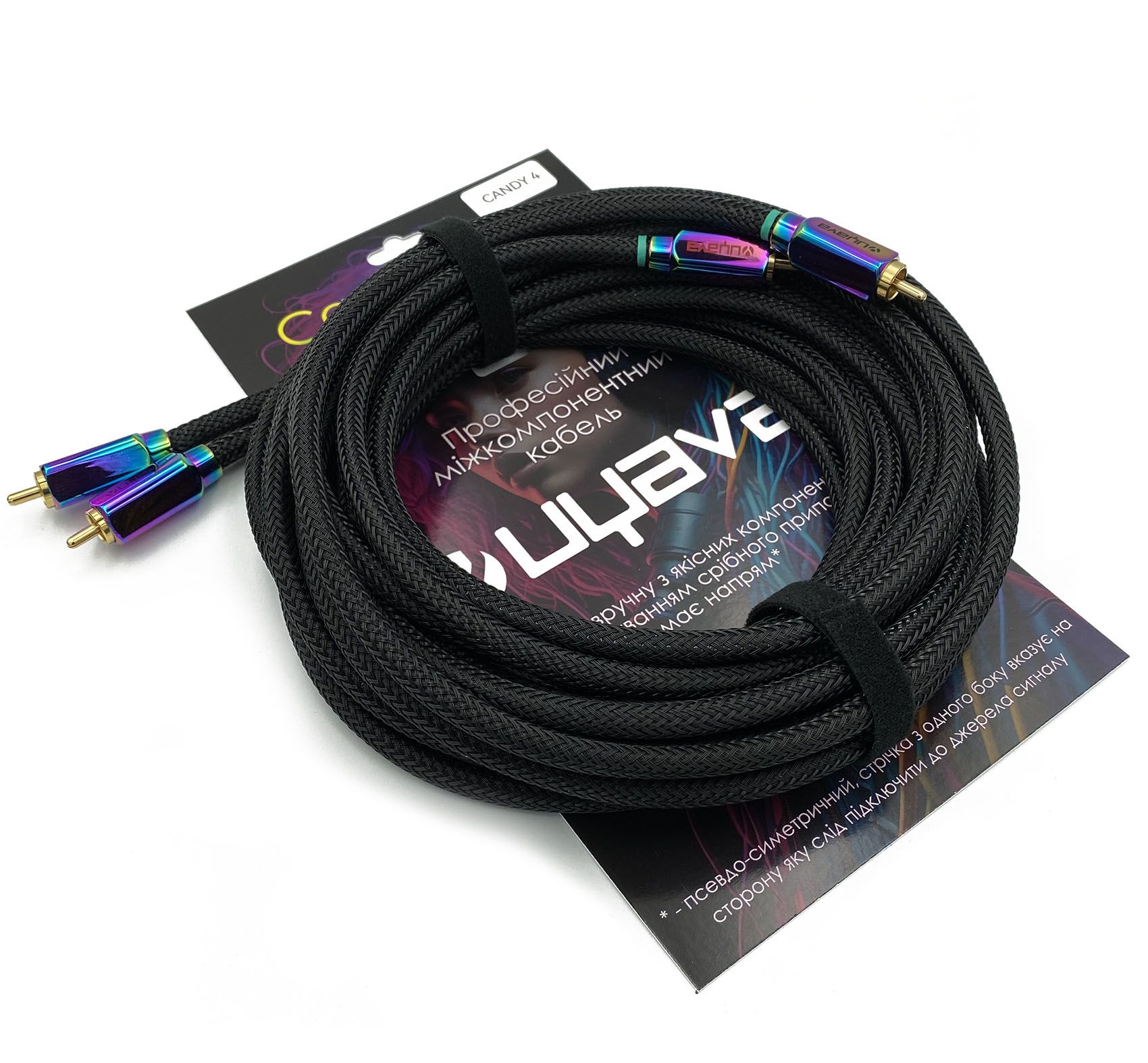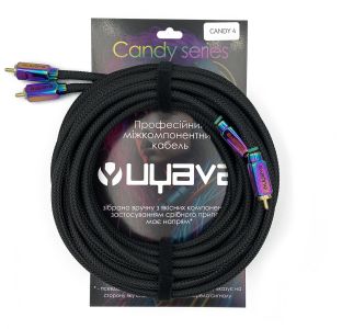 Uyava Candy 4 – професійний міжблочний (міжкомпонентний) кабель, довжина 4 м. 2 канали, серія Candy. Унікальний дизайн конекторів для ще більшої ексклюзивності вашої аудіосистеми. Провідники із чистої міді. Кабель зібраний вручну з якісних компонентів із застосуванням срібного припою та флюсом, що не провокує окислення. Зовнішньо додатково захищений обплетенням "зміїна шкіра". Кабель псевдо-балансний – має напрямок. Зелена мітка вказує сторону підключення до джерела сигналу.