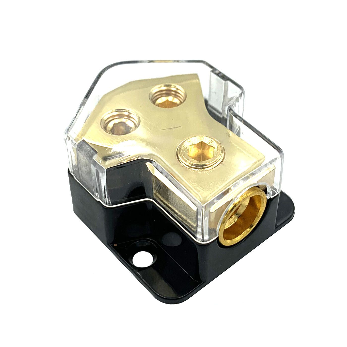 Uyava Ground2 – автомобільний мінусовий дистриб'ютор живлення. 1x2GA(35кв.мм) - вхід та 2x4GA(21кв.мм) - вихід. Тримач немає запобіжників і призначається для комутації "землі". Контакти мають позолоту для кращої провідності.